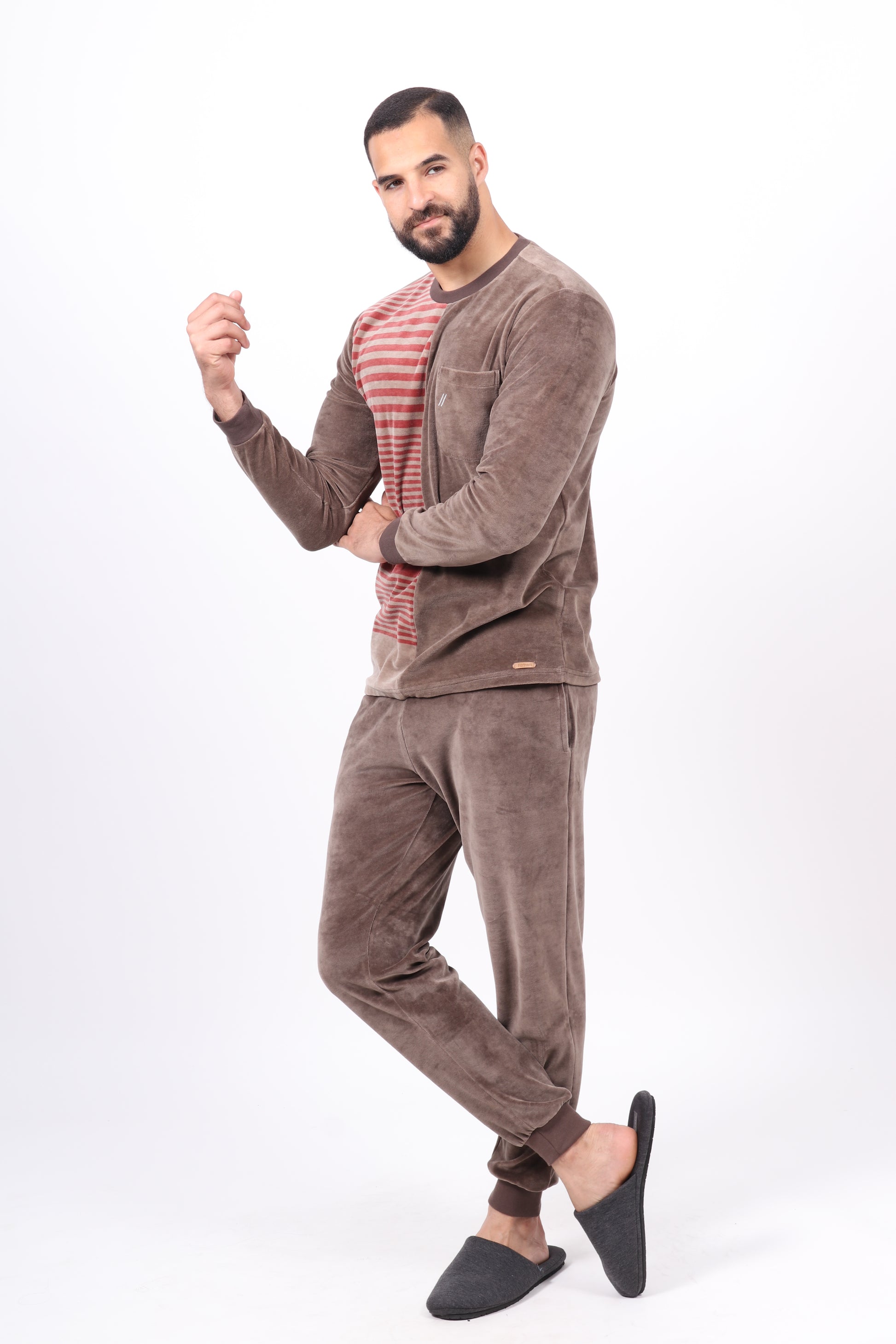 - Pull col rond boutonné à manches longues et poche sur la poitrine.