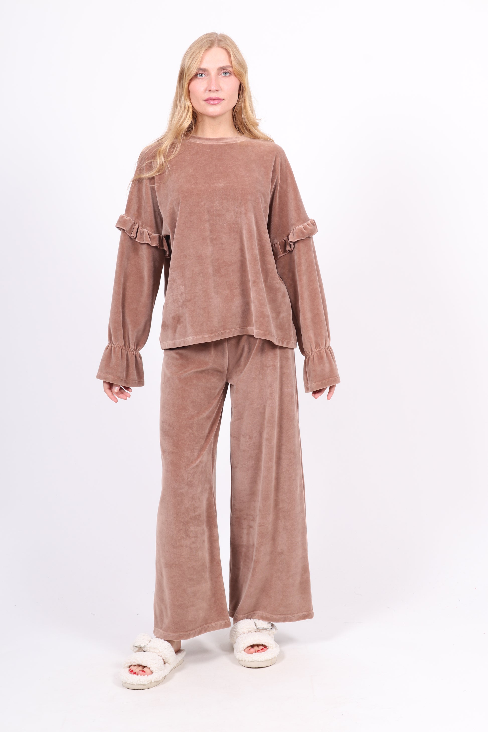 - Découvrez le Pyjama Femme "Cozy", confectionné en matière velours uni pour un toucher doux et agréable, parfait pour les nuits froides.