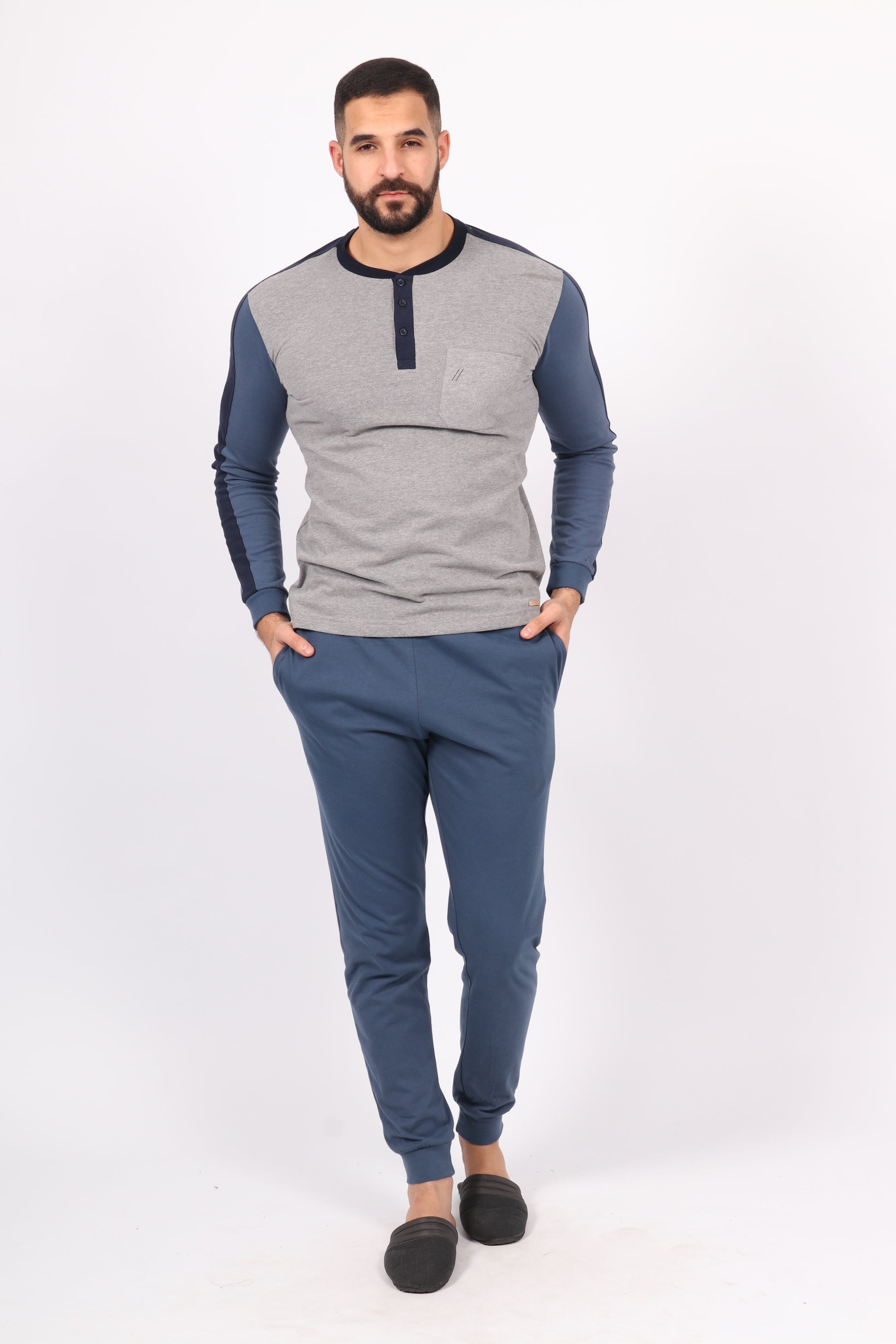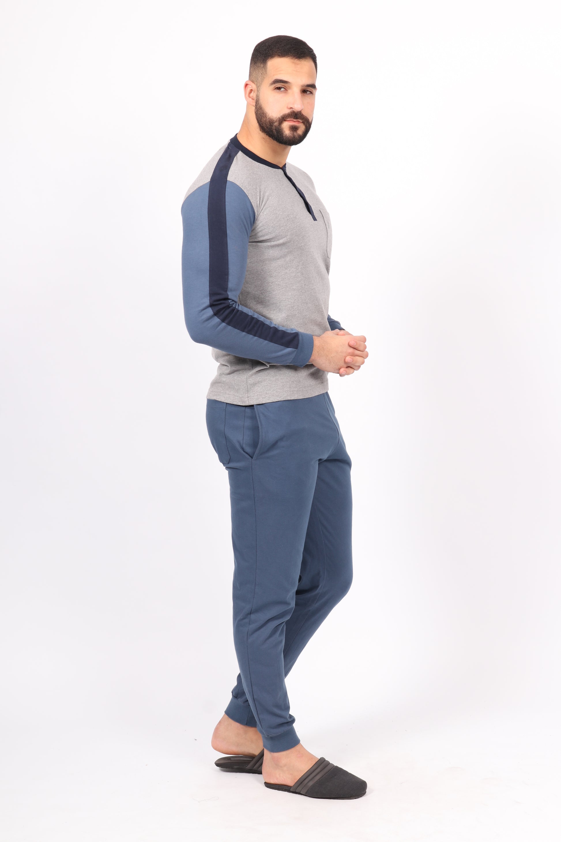 - Découvrez le confort exquis du pyjama Elio, conçu spécialement pour l'homme moderne. Disponible en taille L, ce pyjama bleu gris incarne l'élégance décontractée.