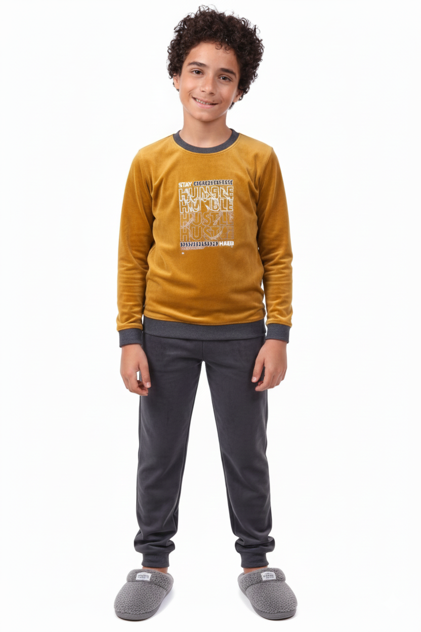 Pyjama enfant en velours doux, idéal pour offrir chaleur et confort pendant les nuits fraîches.