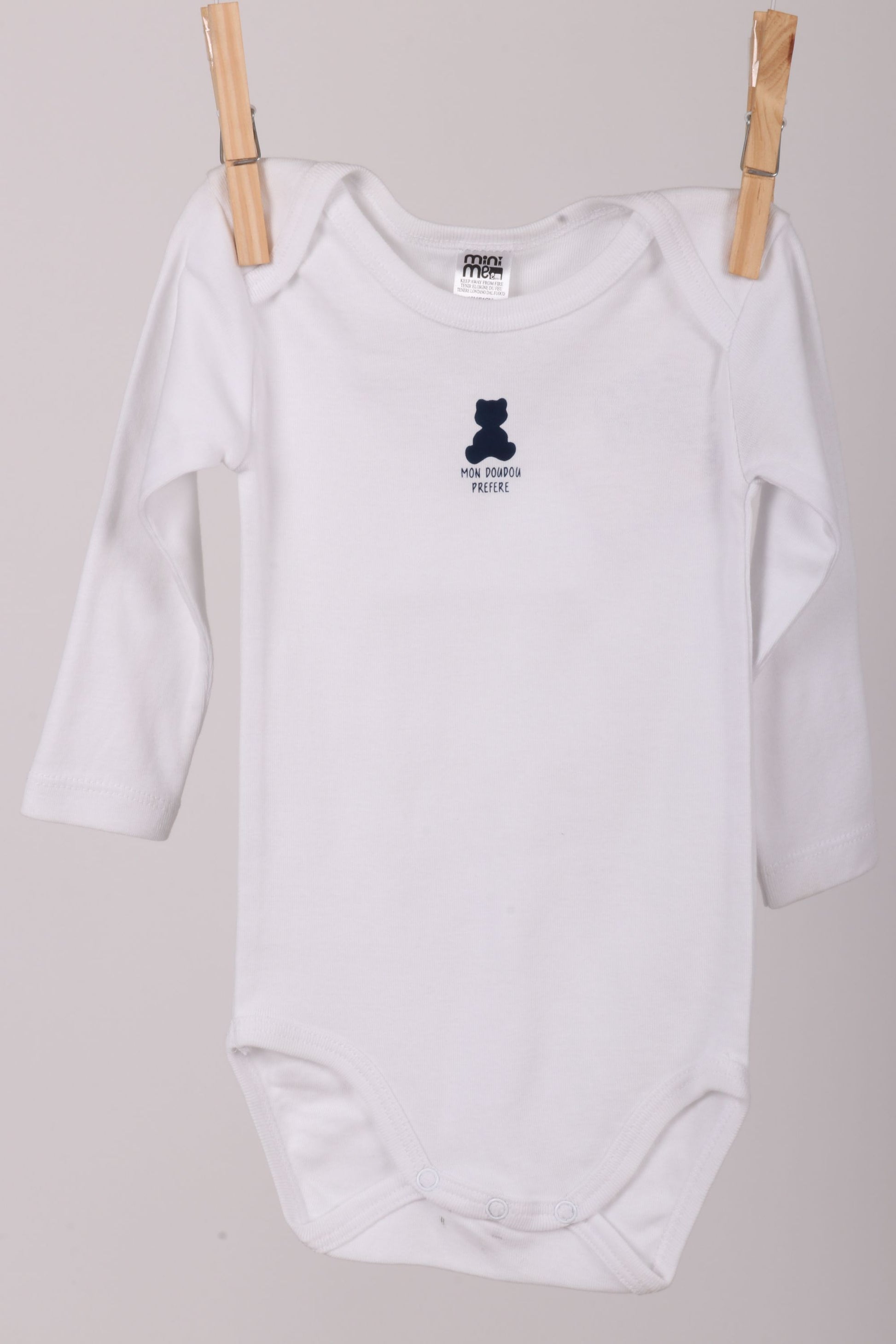 Body à manches longues imprimé sur la poitrine avec fermeture à pression sur l'avant.