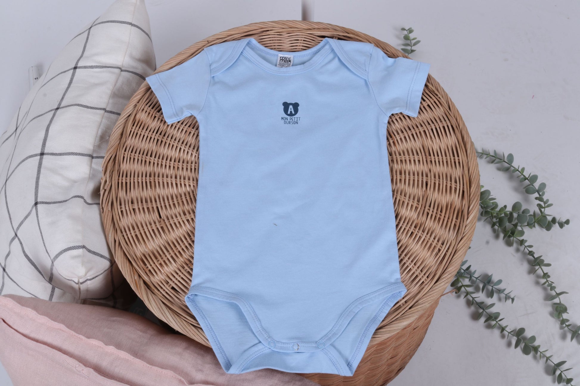 Body à manches courtes imprimé sur la poitrine avec fermeture à pression sur l'avant.
