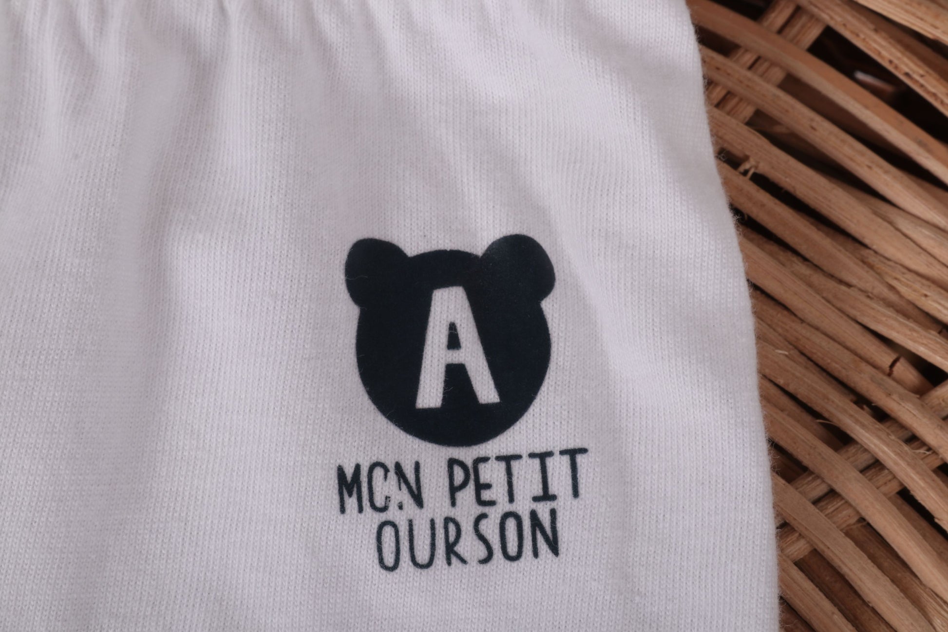 Pantalon uni à pieds avec taille élastique, et logo sur le coté.
