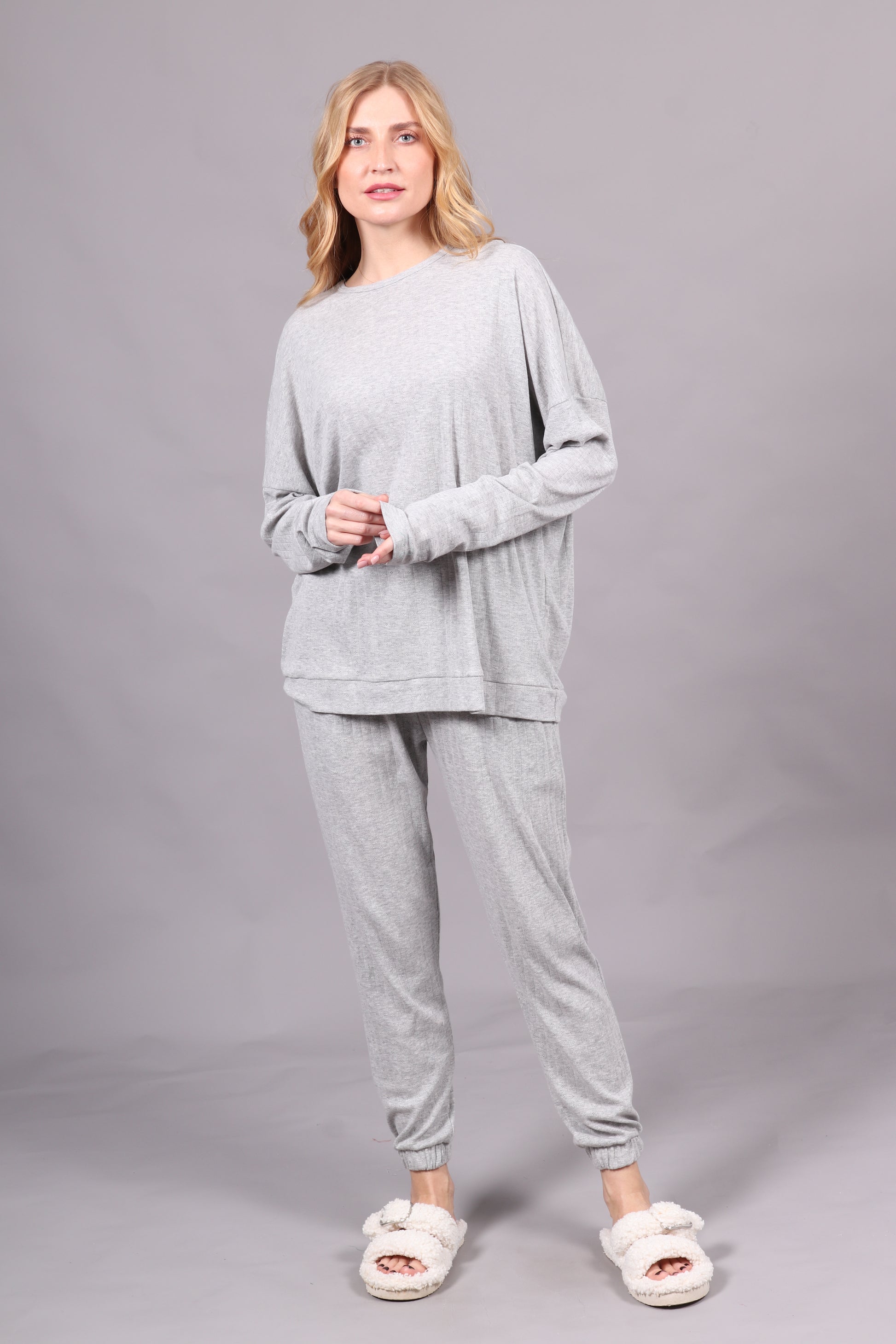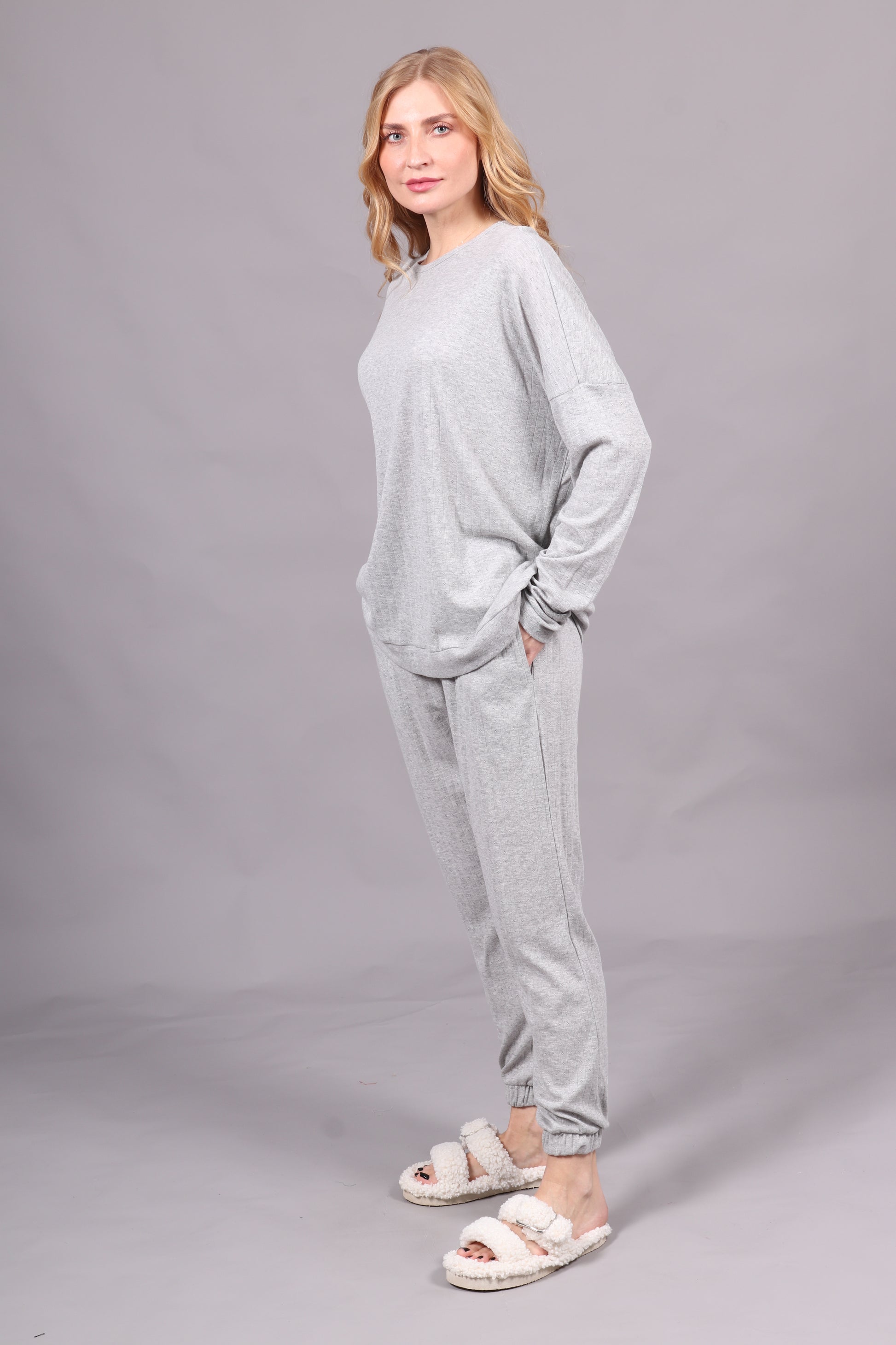 - Offrez-vous le confort absolu avec notre pyjama femme gris, composé d’un haut à manches longues et d’un pantalon serré sur les côtés avec poches. Ce modèle allie praticité et style, pour des nuits agréables et relaxantes tout en restant tendance.