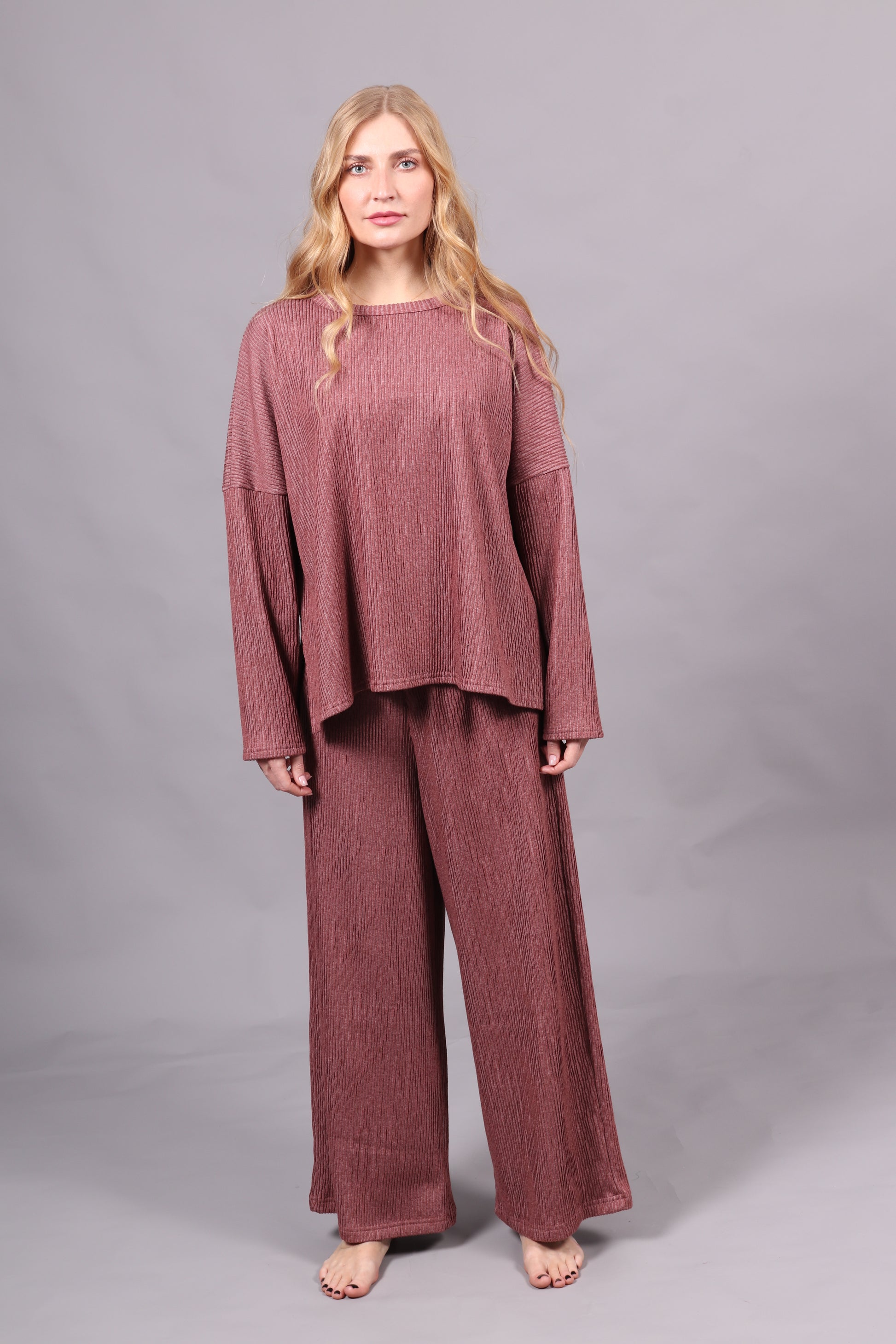 - Ce pyjama parme rosé, à la coupe oversize, offre un confort exceptionnel avec une allure décontractée et moderne. Sa couleur unie apporte une touche de douceur et de sophistication, idéale pour des moments de détente. Parfait pour allier relaxation et style dans un ensemble chic et confortable.