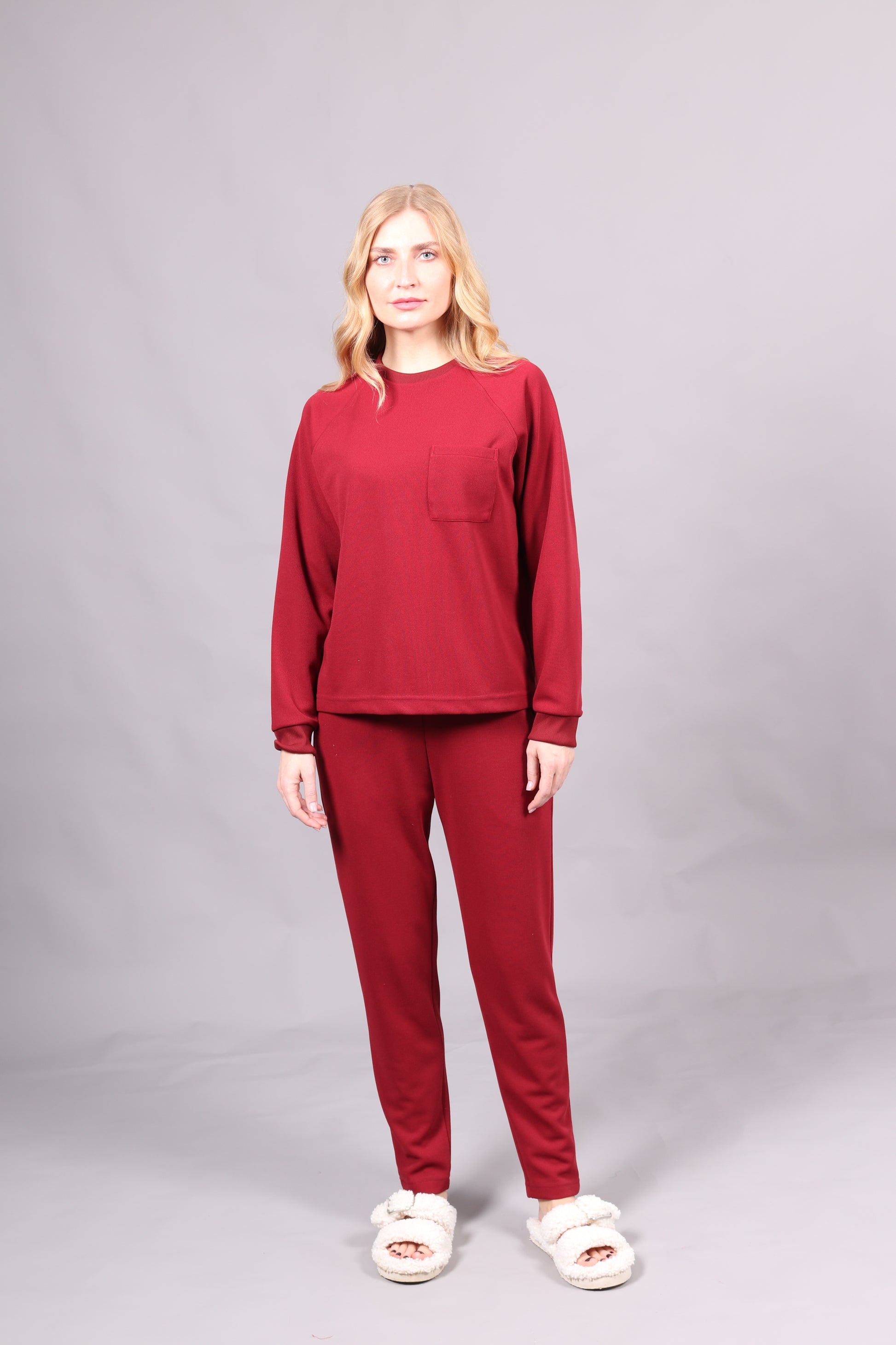- Ce pyjama femme en rouge brique uni se caractérise par sa coupe simple et élégante, rehaussée par une poche pratique sur le devant. Conçu pour offrir confort et style, il est idéal pour des moments de détente tout en apportant une touche de modernité discrète. Un choix parfait pour un look décontracté et raffiné.