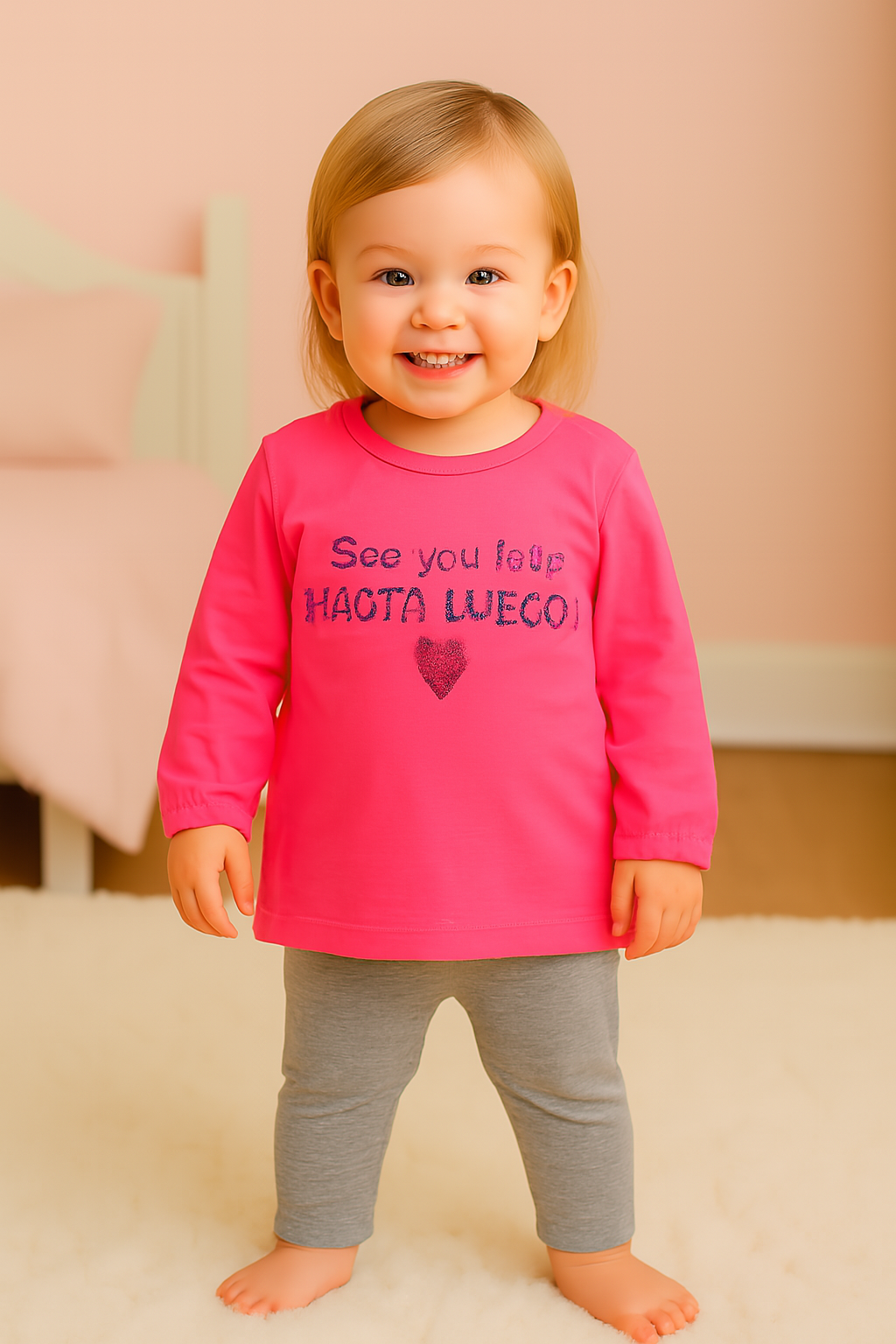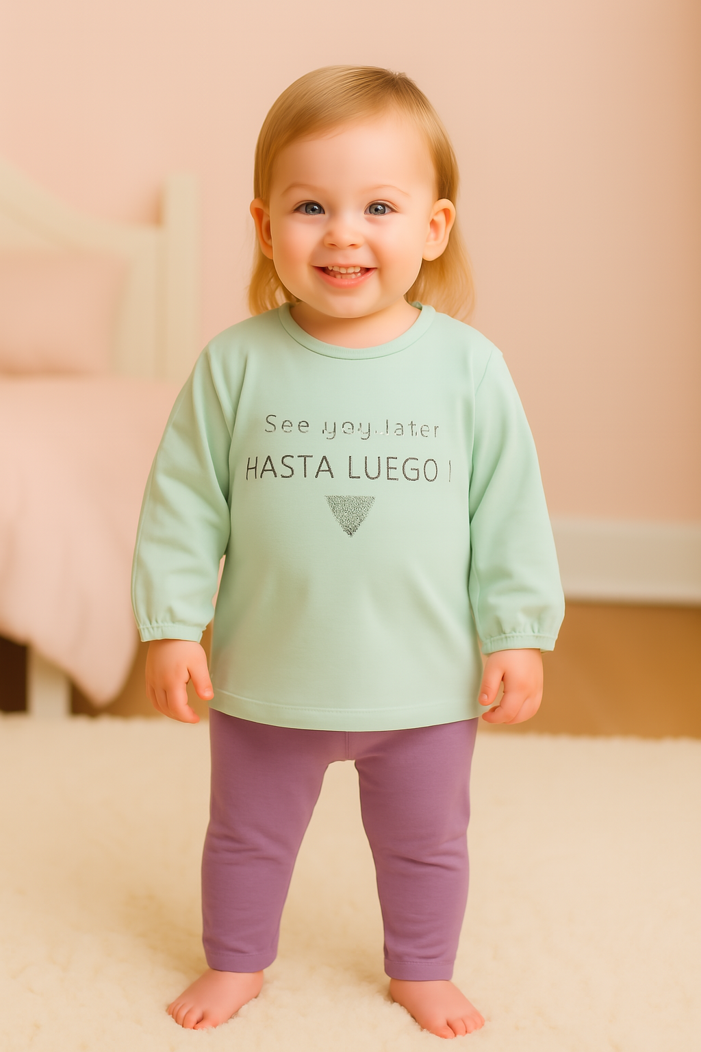 Tunique col rond à manches longues avec poignets élastiques, et imprimé texte sur le devant.